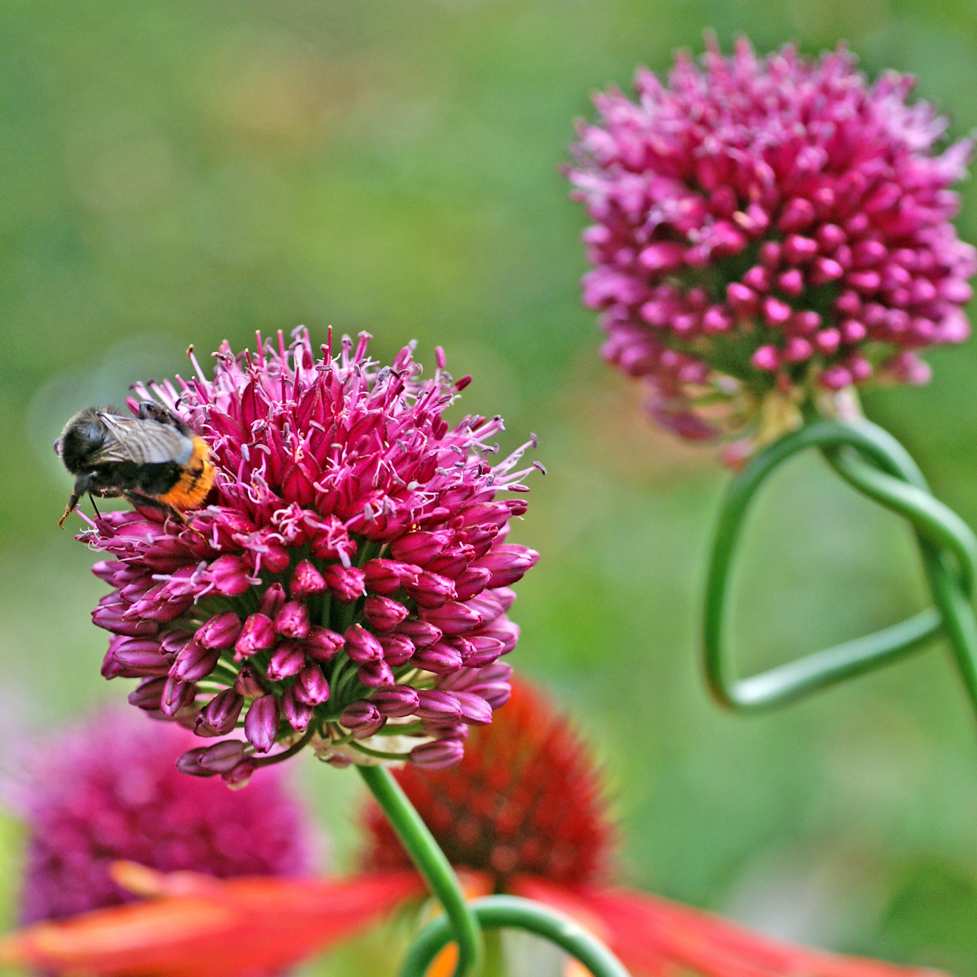 Let yourself be surprised by the lovely allium (Allium Sphaerocephalon)! With its many small flowers in a spherical form, it's a magic wand enchanting the garden. They have a playful appearance with their flexible stems. Plant the allium in the autumn. The allium will flower in the spring.