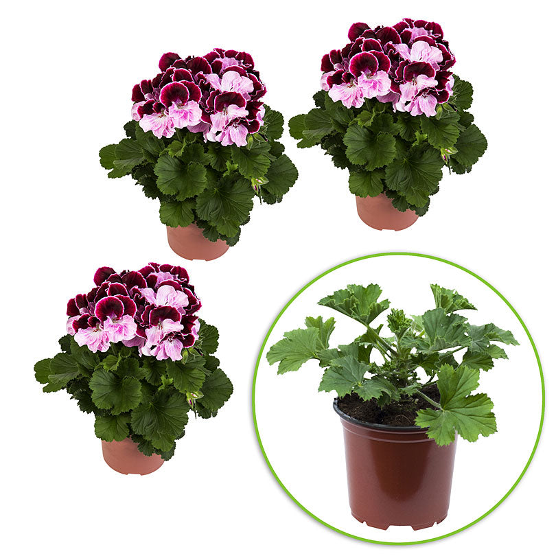 3x French geranium Pelargonium 'Jeanette' red-pink