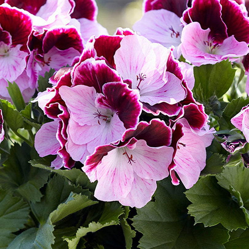Cheerful colour combination. The Regal geranium (Pelargonium grandiflorum) 'Jeanette' really sets the mood! The 'Jeanette' fills the garden with vibrant reddish purple and pink flowers. We can enjoy the charming flowers from summer until late autumn.