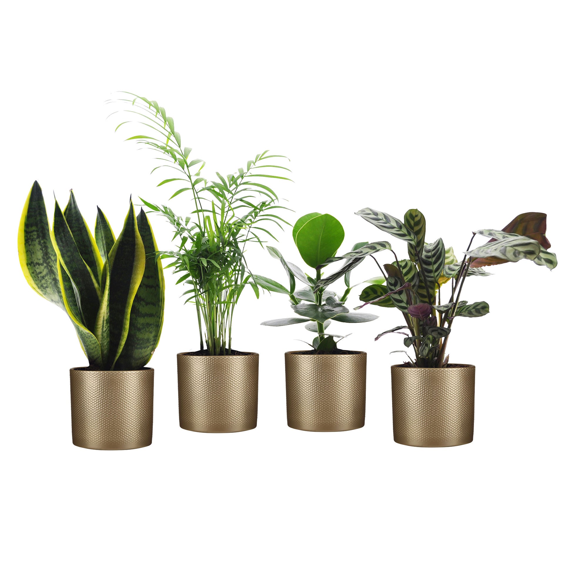 - 4x Indoor plants that are easy to care for - Mix including decorative gold pots