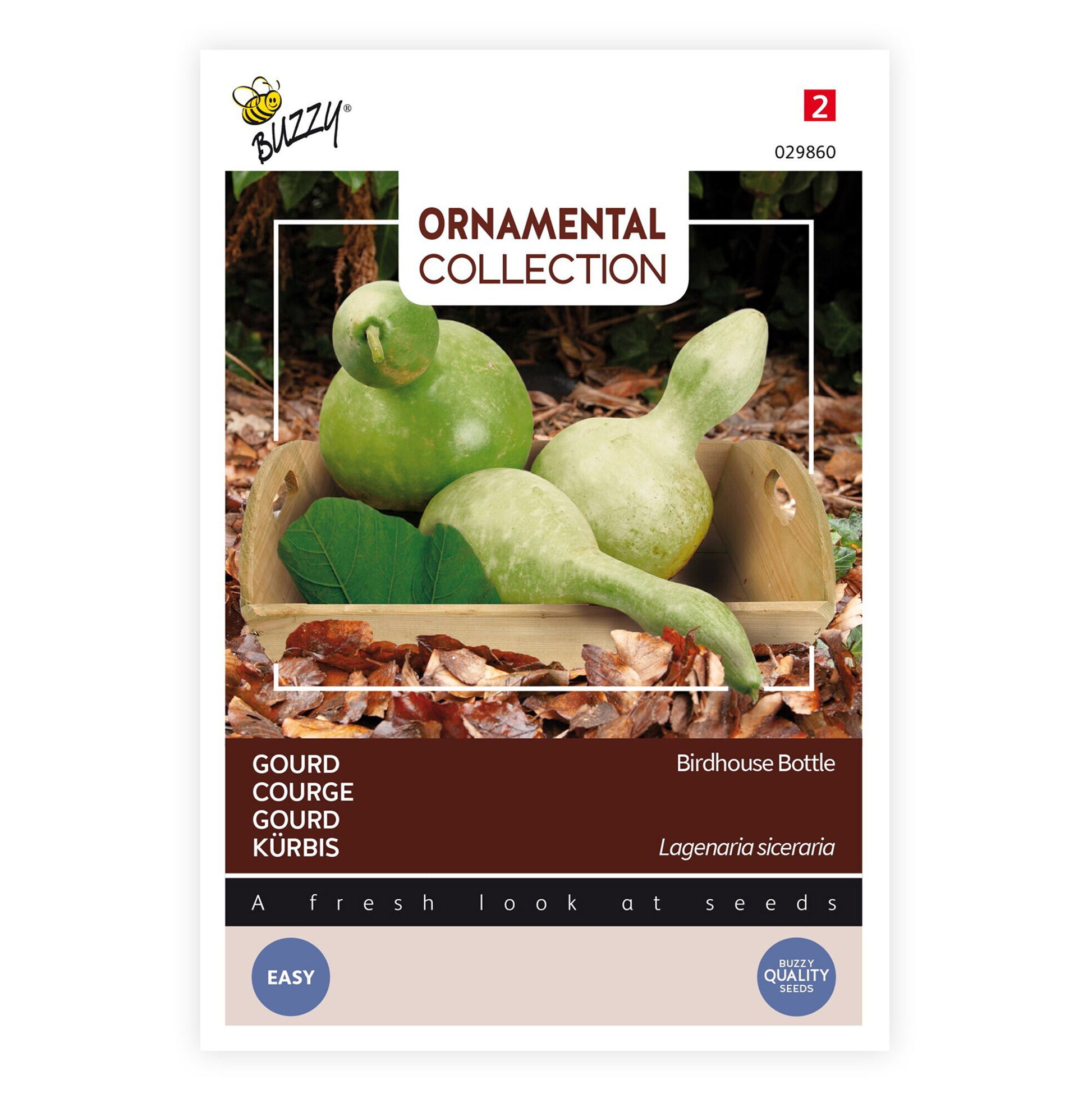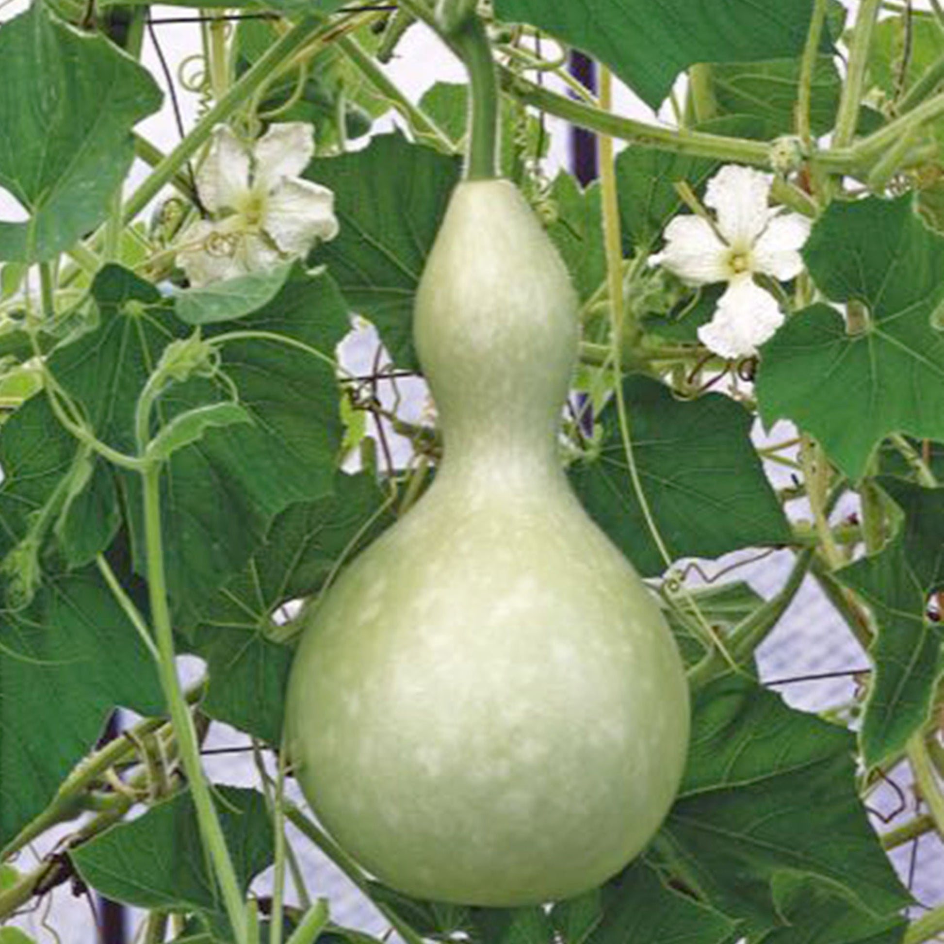 Large and bottle-shaped. The calabash 'Birdhouse Bottle' (Lagenaria siceraria) is light green with a round neck and rounded underside. And it is perfect for making bird houses. You can use the 'Birdhouse Bottle' in dishes, but it is especially suitable for use as autumn decoration. Sow the vegetable seeds directly in the open ground in a seed bed from late April to mid-June. and then move them outdoors to fertile soil.