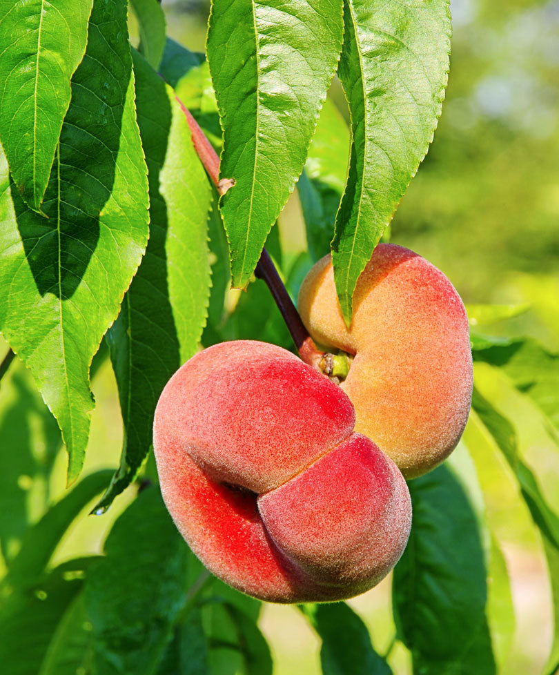 Beautiful blossoms and fruits — the ‘Donut‘ peach tree in a nursery pot has both. The self-pollinating peach tree produces firm and sweet wild peaches. The beautiful pink flowers brighten up our garden in spring. The fruit tree can also be planted in a large pot on a patio, roof terrace or balcony.The fruit tree blossoms in spring. That's when it reveals its lovely pink flowers. A crop will be ready to harvest from summer onwards in the second year after planting. Pruning is not necessary. The hardy peach tree grows in well-drained soil. It's best to give the tree extra water during dry spells. Sufficient light is needed to ensure good growth, which is why we plant the fruit tree in full or half sun.